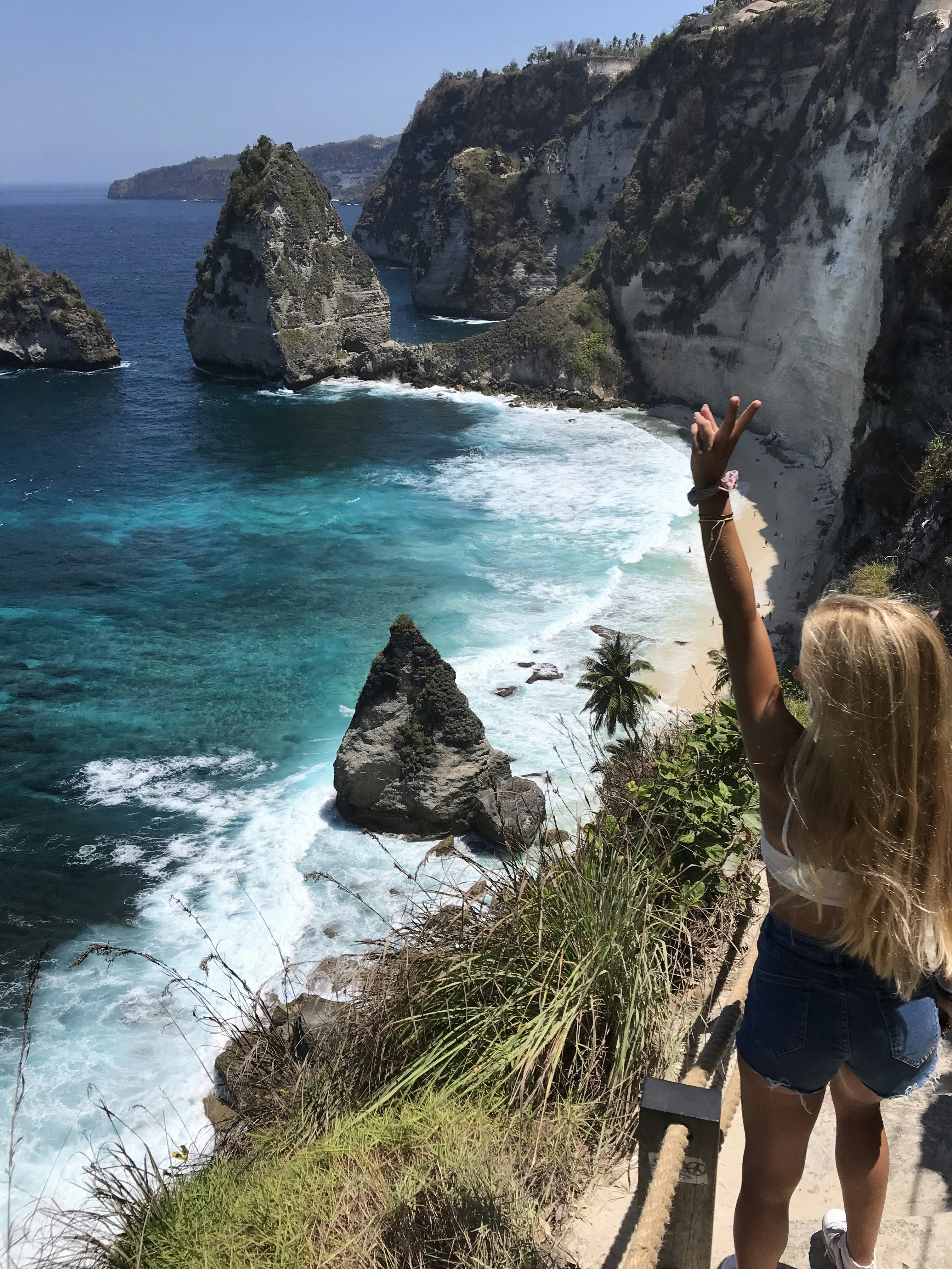У нас забронировано место в пляжном клубе, депозит на каждого, все для комфорта и отдыха. День мы проводим в пляжном клубе, а ближе к вечеру отправляемся смотреть на волны и закат в храм на скале откуда открывается великолепный вид.